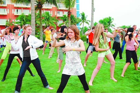 站在东屿岛博鳌索菲特大酒店的绿草地上,对面是如画的玉带滩,万泉河、龙滚河、九曲江在旁边汇入大海。从事气功、太极教学45年的中国师傅张茂国拉开架式开教太极拳。在中国民族音乐的背景下,俄罗斯客人跟着张师父一招一式学得出奇认真(见上图,特约记者蒙钟德摄)。22岁的客人伊莲娜边叹美景如画边练太极,她说:“中国功夫真神奇,我喜欢上它了!”