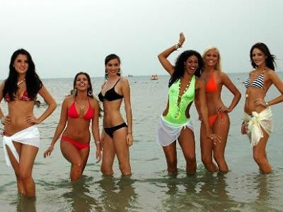 十一月四日,参加第五十七届世界小姐总决赛的部分佳丽来到三亚亚龙湾进行泳装秀,演绎时尚性感。