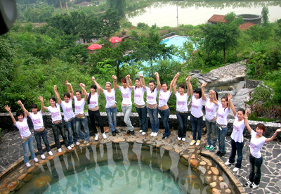 英德奇洞温泉度假村位于清远英德市望埠镇李屋村,是广东赛区指定拍摄基地。据组委会介绍,他们之所以选择奇洞温泉,是因为景区设施完备,风光独特,是广东省内首家以自然溶洞生态景观为主题的温泉度假圣地。温泉附近自然旅游资源丰富,天门沟度假区、宝晶宫溶洞、仙桥地下河、老虎谷暗河漂流、英西峰林走廊、菜花峪等。