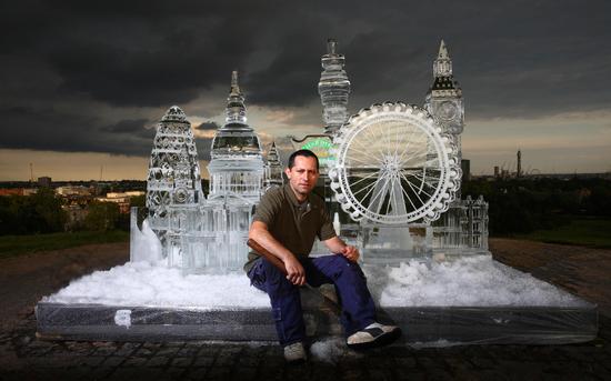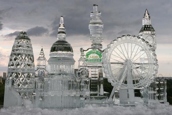 2008年6月17日,英国伦敦北部的Primrose Hill,中国啤酒品牌哈尔滨啤酒在伦敦做宣传,伦敦地标的冰雕模型与哈尔滨啤酒一同亮相。
